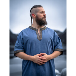 This epic tunic is perfect for medieval and fantasy festivals, LARP, and cosplay. With its short sleeves, it’s ideal for warm days. The sleeves and neckline are beautifully adorned with a decorative trim. You can style the tunic in various ways to create the look of your dreams. The tunic has a loose fit, so we recommend choosing one size smaller than the size chart suggests and pairing it with a belt.