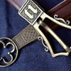 The blade of the claymore is hand-forged and polished. THe sword has a length of 122 cm with a blade of 91 cm and a grip with a length of 21 cm. It weighs approx. 1,81 kg.